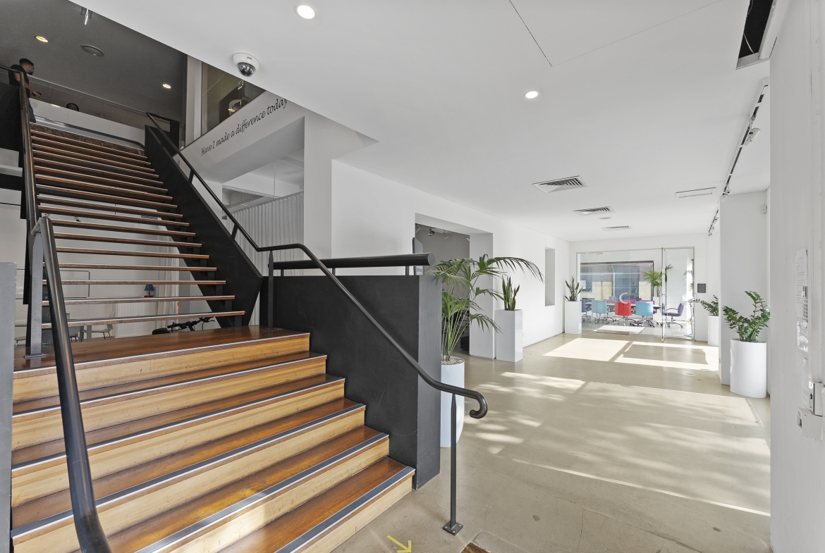 Positioned with a prized north-east aspect, the premises is filled with natural light and set within a professional commercial environment. This impressive warehouse-style space features soaring ceilings, polished concrete floors and a versatile open-plan configuration suitable for a wide range of showroom, retail, office or creative uses (STCA).